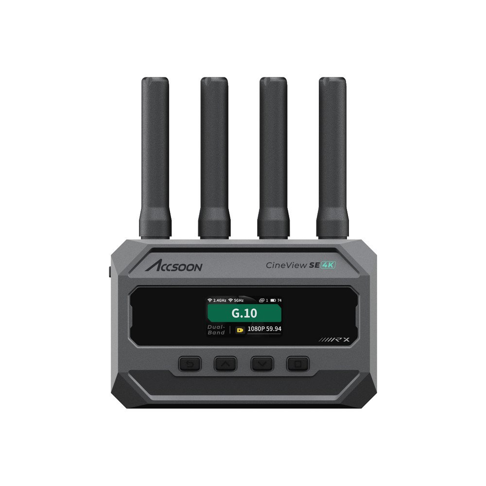 The Accsoon CineView SE 4K is a next-generation dual-band wireless video transmission system delivering true 4K30 end-to-end monitoring, ultra-low latency, and integrated wireless camera control. Designed for filmmakers, live streamers, content creators, and production teams, it combines Accsoon’s patented dual-band transmission with powerful H.265 encoding for reliable, high-quality wireless monitoring in demanding environments.