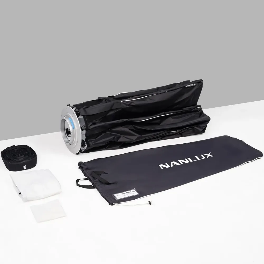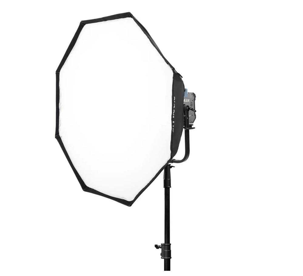 The Nanlux Octa 5' Shallow Softbox with NL Mount (SB-O5-NL) is a professional light modifier developed in collaboration with DoPchoice and designed specifically for Nanlux NL mount fixtures. With its large 155 cm diameter and dual-layer diffusion system, it produces beautifully soft, even lighting that is ideal for film, broadcast, and studio productions.
