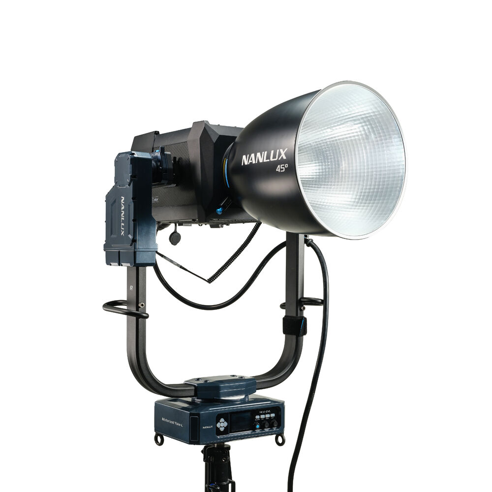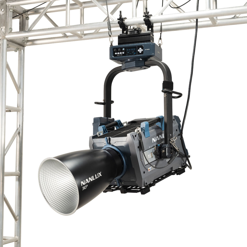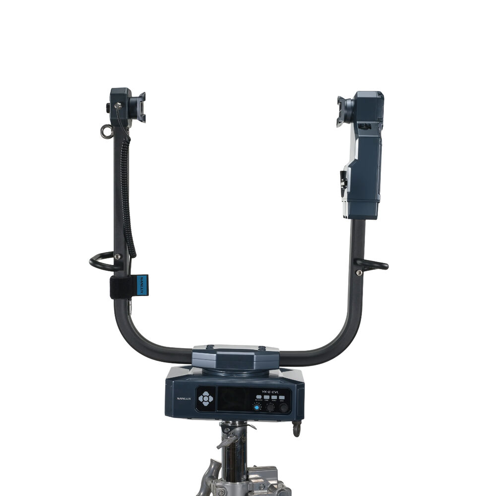 The Nanlux Motorized Yoke-L (YK-E-EVL) is purpose-built to deliver faster, safer, and more precise fixture positioning for the Evoke 5000B and Evoke 2400B. Designed for modern film and television production, it replaces manual adjustments with smooth, remote-controlled motorised pan and tilt movement—reducing physical workload on set while increasing efficiency and creative flexibility.