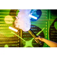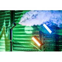 The compact form accommodates a huge range of possibilities – from a subtle mist, to a dry ice effect, to thick smoke as if from a theatrical stage. The generator is distinguished by its high power output of up to 40 watts. The device offers independent adjustment of the intensity and density of the aerosol, a set of interchangeable tips, a movable head for changing the angle of inclination, colorful RGB backlighting and a remote control. The rechargeable battery provides up to 30 minutes of operation. An automatic mode allows you to precisely program the smoke ejections. Mr. Mist is also safe, easy to use and fully portable. The set did not lack a bottle of liquid allowing you to start working right out of the box.
