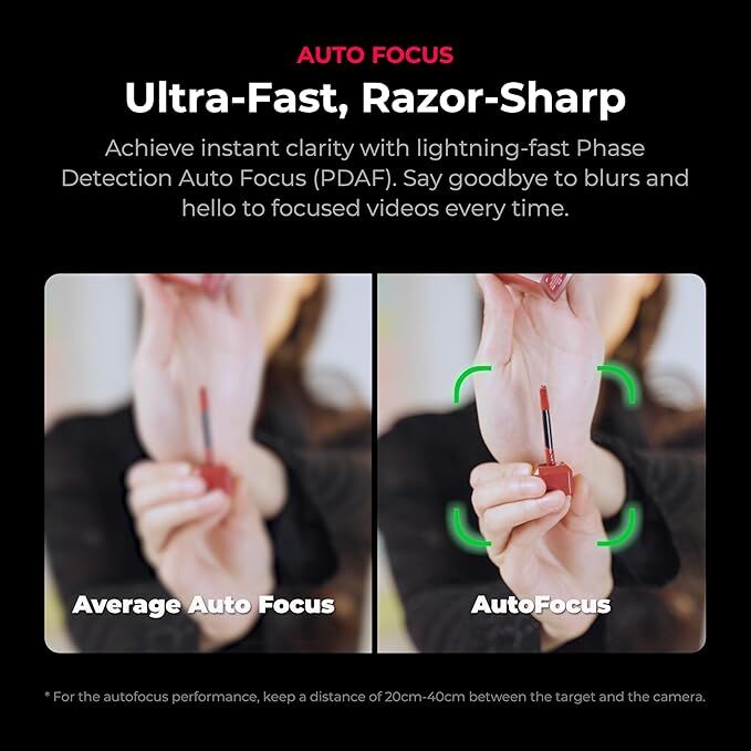 Equipped with Phase Detection Autofocus (PDAF), YoloCam locks focus quickly and accurately, ensuring your videos remain sharp and blur-free even when subjects move.